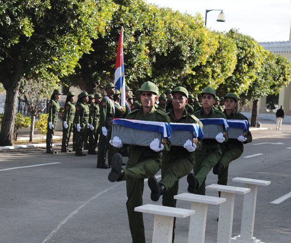 Presidida por el Primer Secretario del Partido Comunista de Cuba y Presidente de la República, Miguel Díaz-Canel Bermúdez, tuvo lugar la ceremonia de inhumación de los cuatro combatientes que residían en La Habana, caídos en la hermana República Bolivariana de Venezuela, tras un artero ataque militar.