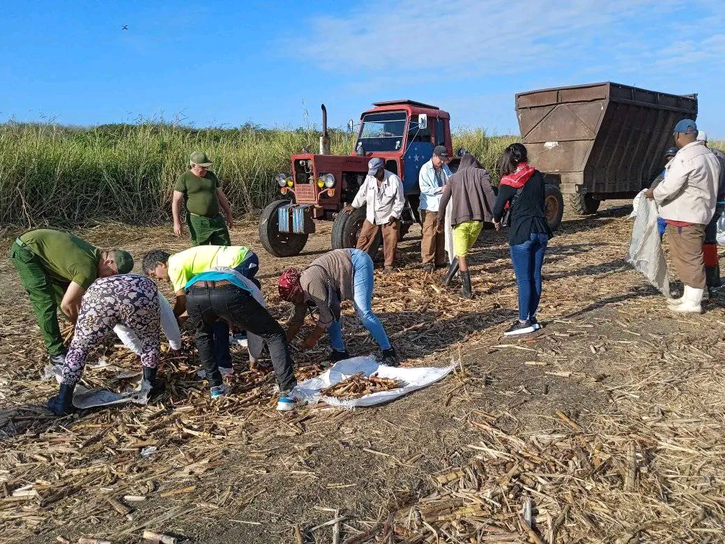En la actividad que se centró en la recogida de caña posterior al corte, participaron también un pelotón de combinadas sagüero y un grupo de jóvenes de varios sectores económicos, políticos y sociales del territorio.
